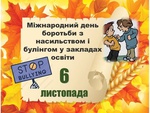 6 листопада - Міжнародний день боротьби з насильством і булінгом у закладах освіти